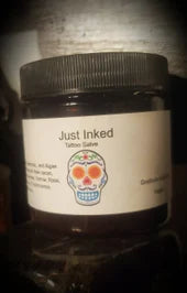 Just Inked Salve is Bruja formulated to support the healing of new tattoos while preserving their vibrant color. This soothing salve promotes skin recovery and helps maintain the intensity of your ink, ensuring your tattoo looks fresh and well cared for during the crucial healing process. Ideal for tattoo aftercare, it provides gentle nourishment without compromising the artwork.